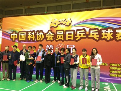 2014年中国科协会员日乒乓球赛(第五届)于11月29日-30日在北京广安体育馆成功举办。本次比赛由中国科协机关党委、中国科协学会服务中心党委联合主办,中国农业工程学会等四家单位联合承办,共有来自中国科协所属全国性学会、中国科协机关及直属单位的47支代表队、300多名运动员参加比赛。