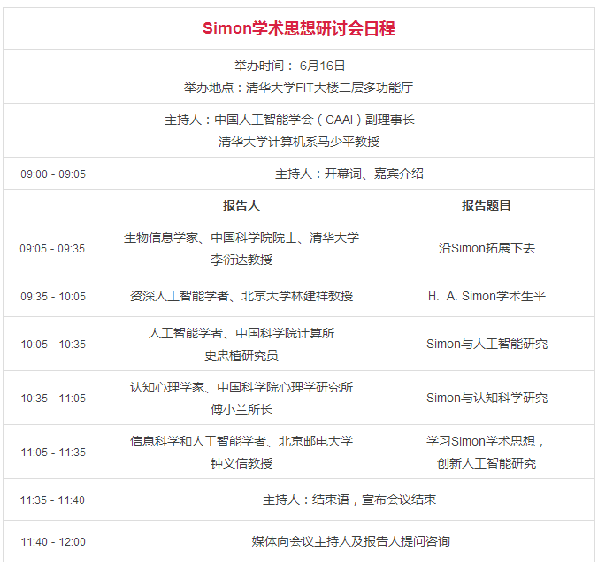 6月16日上午9:00开始的“Simon学术思想研讨会”得到了中国人工智能学会和清华大学的高度重视,也获得了学术界的积极响应和大力支持。
