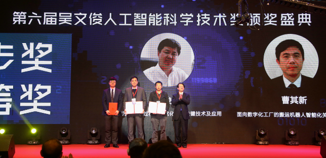 由北京工业大学、中国科学院沈阳自动化研究所、北京城市排水集团有限责任公司的乔俊飞、于海斌、韩红桂、苑明哲、常江、于广平、杨庆、李文静、杨翠丽、侯莹、武利、张会清、严爱军、高学金、郭民、柴伟、王景杨、张建华、王佳伟、高永青、郝二成完成的“城市污水处理过程智能优化控制关键技术及应用”项目成果;上海交通大学、沈阳新松机器人自动化股份有限公司的曹其新、徐方、朱笑笑、邹风山、冷春涛、王鹏飞、杨奇峰、李学威、陈鹏、白卫邦、张昊若完成的“面向数字化工厂的搬运机器人智能化关键技术及应用”项目成果;华南理工大学、清华大学、北京航空航天大学、中山大学、上海交通大学、广州章和电气有限公司、上海璟和技创机器人有限公司的李智军、孙富春、袁培江、宋嵘、史震云、胥布工、张卫平、顾捷完成的“可穿戴康复机器人关键技术及其应用”项目成果分别获得吴文俊人工智能科学技术进步奖一等奖。